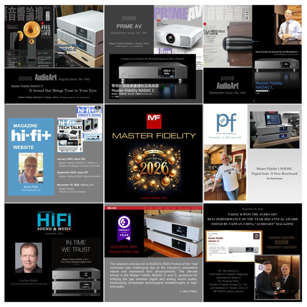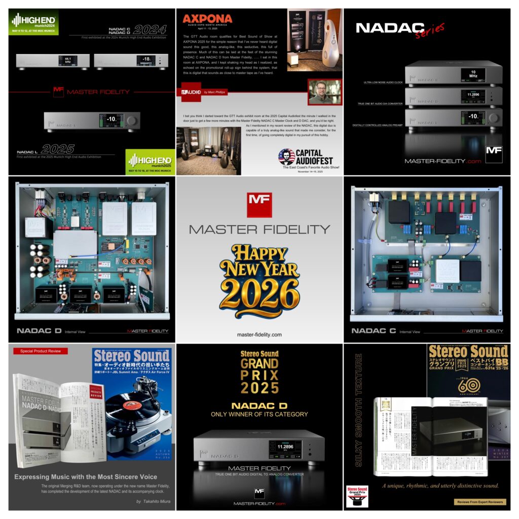 After an unforgettable 2025 rewarded by an AXPONA 2025 Best Sound of Show, a Stereo Sound Grand Prix 2025, a pt.AUDIO Best Product of the Year 2025 and an Audio Art Best Performance of the Year 2026, Master Fidelity would like to warmly thank all its customers, partners and friends and sends them its very best wishes for a Happy New Year 2026 !